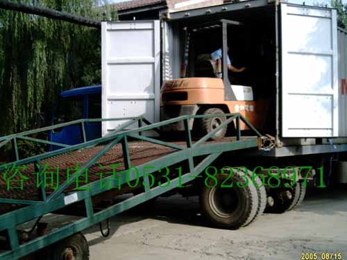 移動(dòng)式液壓裝卸過橋廣泛用于無裝卸設(shè)備的貨臺(tái)及流動(dòng)裝卸場(chǎng)所,是與叉車配合使用的貨物裝卸輔助設(shè)備。借助該設(shè)備,叉車能直接駛?cè)肫嚰b箱內(nèi)部進(jìn)行批量裝卸作業(yè)。只需單人操作,不需動(dòng)力電源。實(shí)現(xiàn)貨物的安全快速裝卸,既可減輕勞動(dòng)速度,又能成倍提高裝卸作業(yè)效率,加快物料流通速度,獲取更大經(jīng)濟(jì)效益。